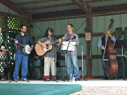 After an hour of trains, we continued south to Curtis Apple Orchard, a autumn tradition popular with U of I students and their parents. Admission is free, but the Curtis family covers the cost of the displays and entertainment by charging more than grocery store prices for apples and pumpkins. It’s worth it. Sean loved the many children’s activities and I loved watching him play. While he munched on apple donuts and apple juice, we listened to blue grass ballads, complete with banjo and bass fiddle. Sean picked his perfect pumpkins and we headed home.