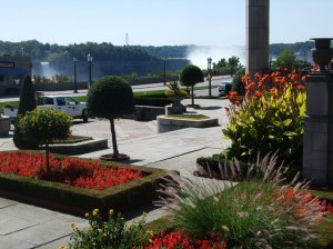 Gorgeous flowers bloomed everywhere: formal gardens, huge hanging baskets on every light pole, in parks, homes, restaurants. The climate must be perfect for flowers. Park land paralleled the river above and below the Falls. People from every nation roamed the streets, picnicked, and photographed the Falls. A perfect summer day.