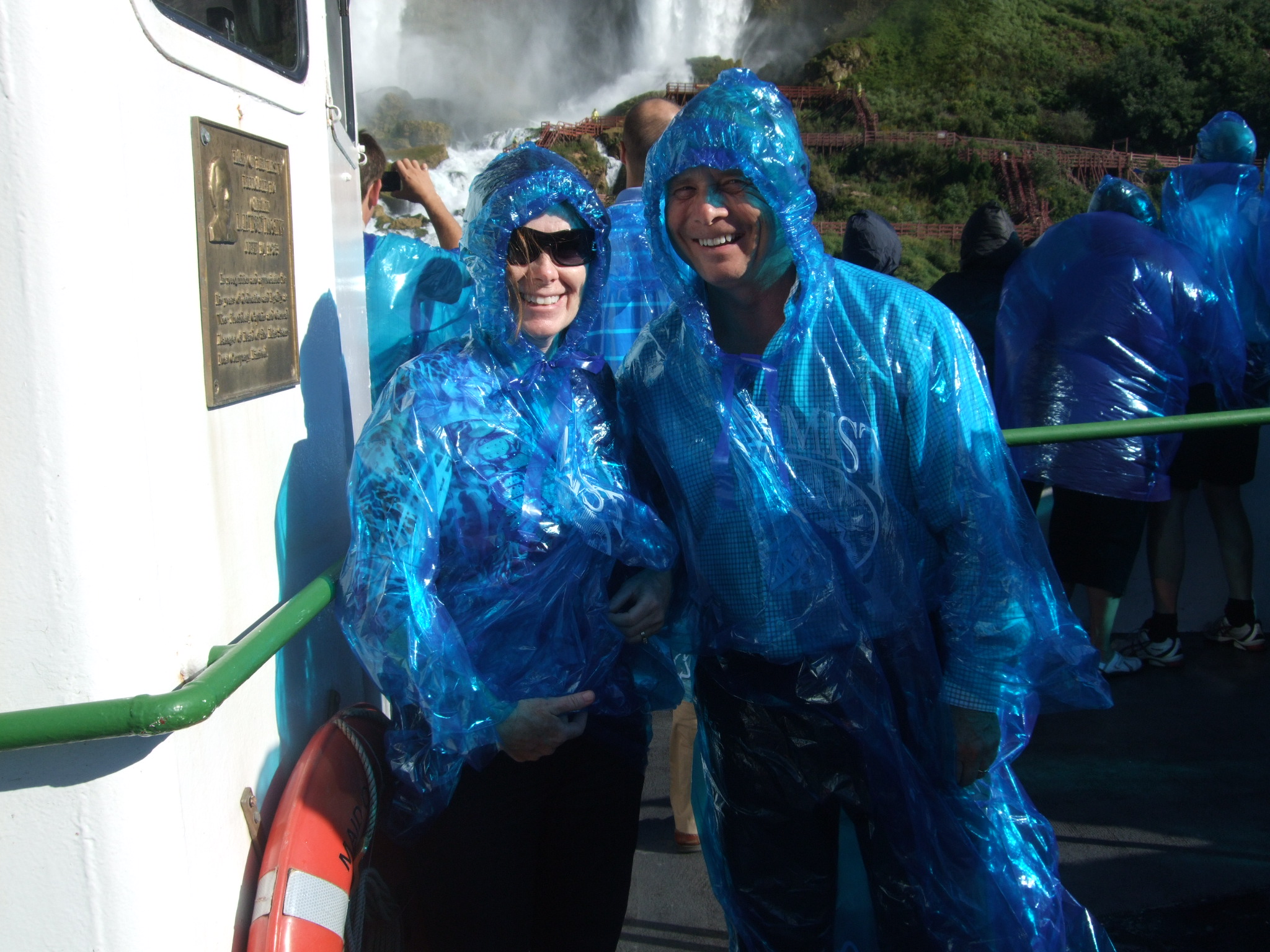 Maid of the Mist is a good sized boat, but it seemed to shrink as we neared The Falls. The boat nosed into a cloud and bucked and rolled in the churning water.The mist turned into a driving rain.The force of the waterfall created winds that tore at our flimsy plastic protection. We gripped the railings, clutched at our billowing blue baggies, and laughed. The experience drenched and energized us.