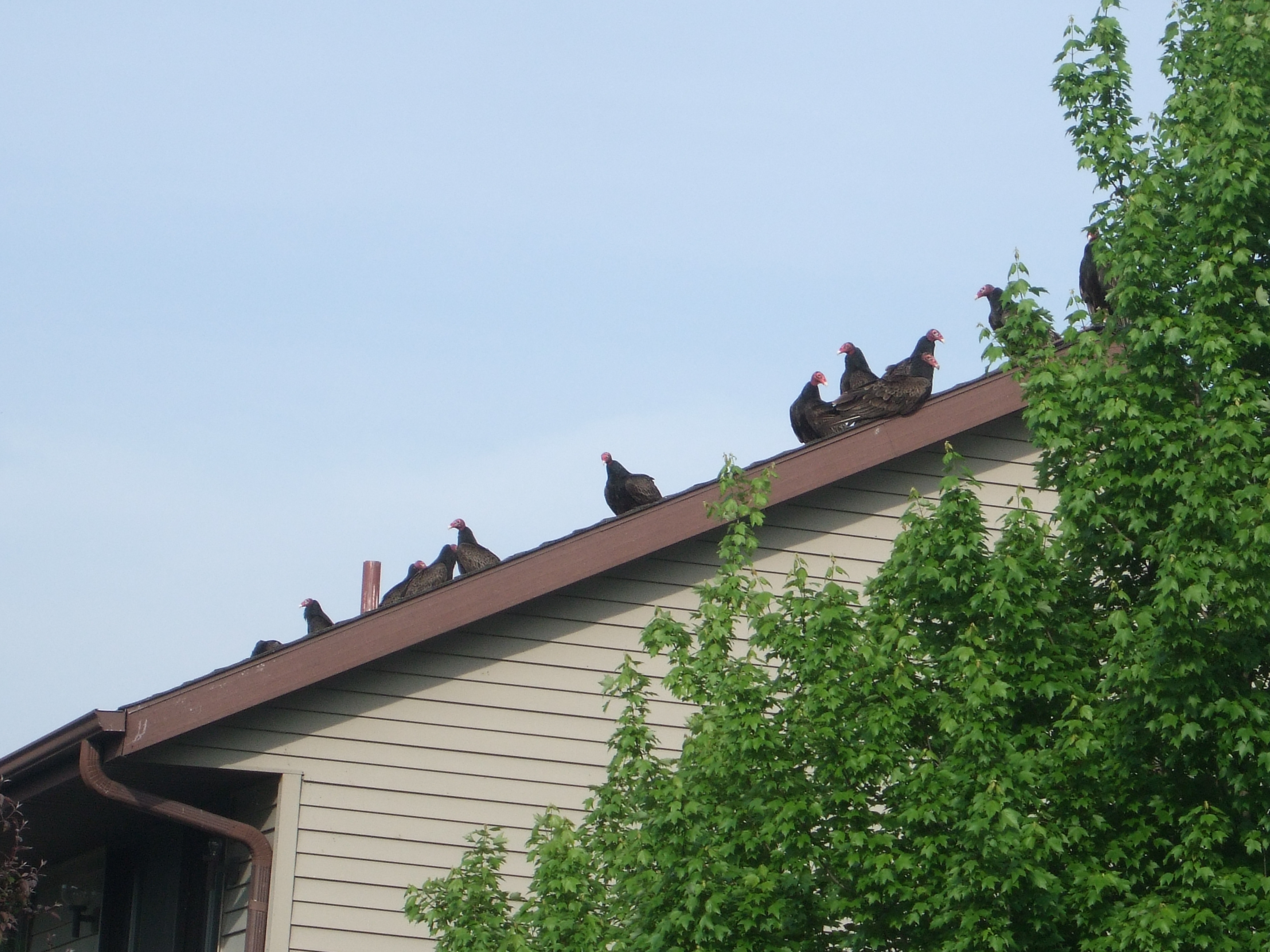 After a long winter, we went to the lake cottage to open it up for the summer season. The wildlife had taken over. Vultures had splatted white droppings over all the outside railings and most of the deck. I scrubbed with soapy water and a powerful hose, but the stuff sticks like paint.
