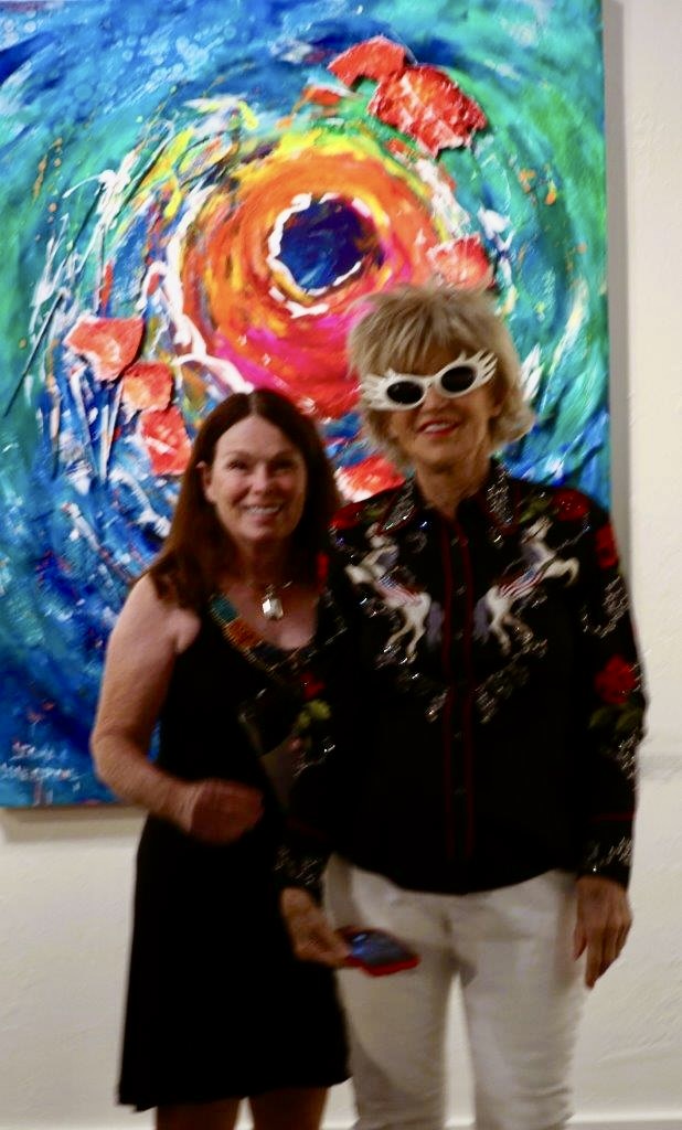 The launch of Storm Stories – Hurricane Ian took place on the one-year anniversary of the storm. The theater at the Alliance for the Arts in Fort Myers was filled to capacity and it turned into a big media event, complete with TV coverage. Wow. Leona Lovegrove was there with more of her art work, her statement pieces, depicting the storm .
