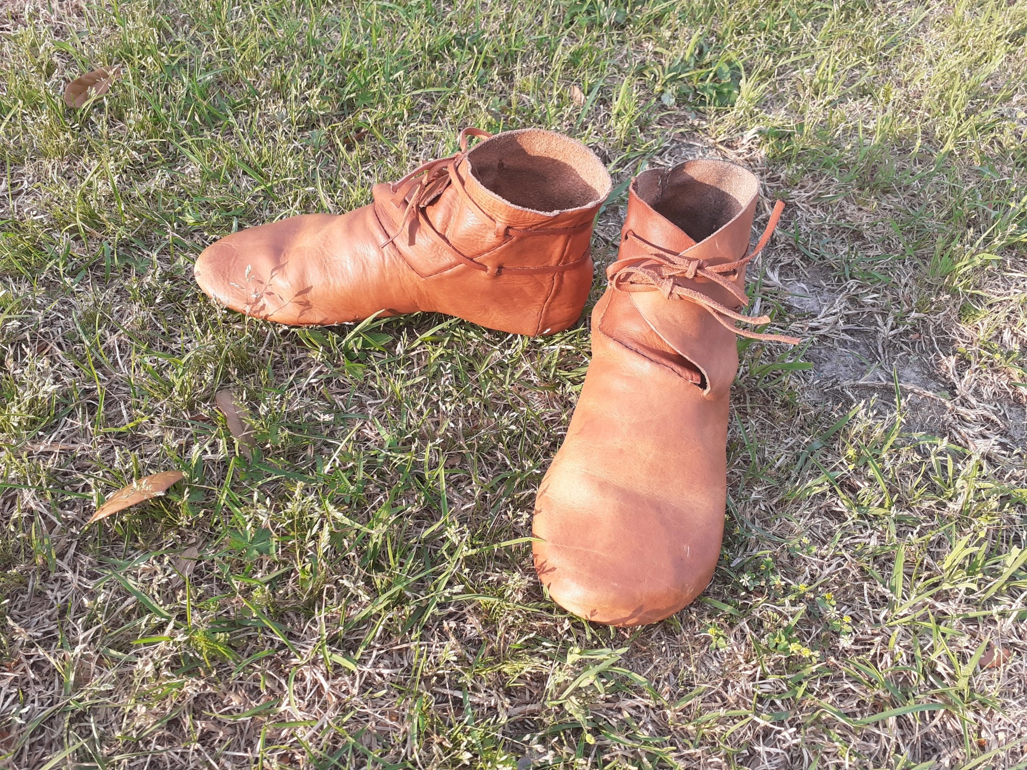 Habitants of rural France in 1650 had to use whatever was at hand, make what they needed, or barter their skills for goods. So, where did they get their shoes? As I researched their clothing for my novel, I found one type of shoe was called a turnshoe–leather sewn and then turned inside out. The turnshoe style was easier to make than those made for the nobles, and peasants could use easy-to-get sheepskin for the leather.. Getulio, a maker of historic shoes for re-enactors, renaissance fans, and movie sets, explains it all: