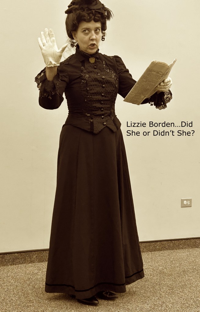 Re-enactments are a terrific way to experience history. Last night I attended a fabulous living-history portrayal of the infamous Lizzie Borden by Leslie Goddard.