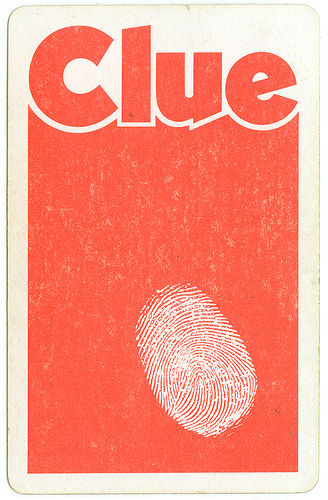 Use the cards from old Clue games. To make cards specific to your event…..(A picture of your dining room, a nine-iron) create new cards from card stock (Print the Clue logo on paper for the back) or use other Clue cards and paste new pictures (such as your golf pro’s photo) over the old. In the end, have 4 suspects, 4 weapons, and 4 crime scene sites.
